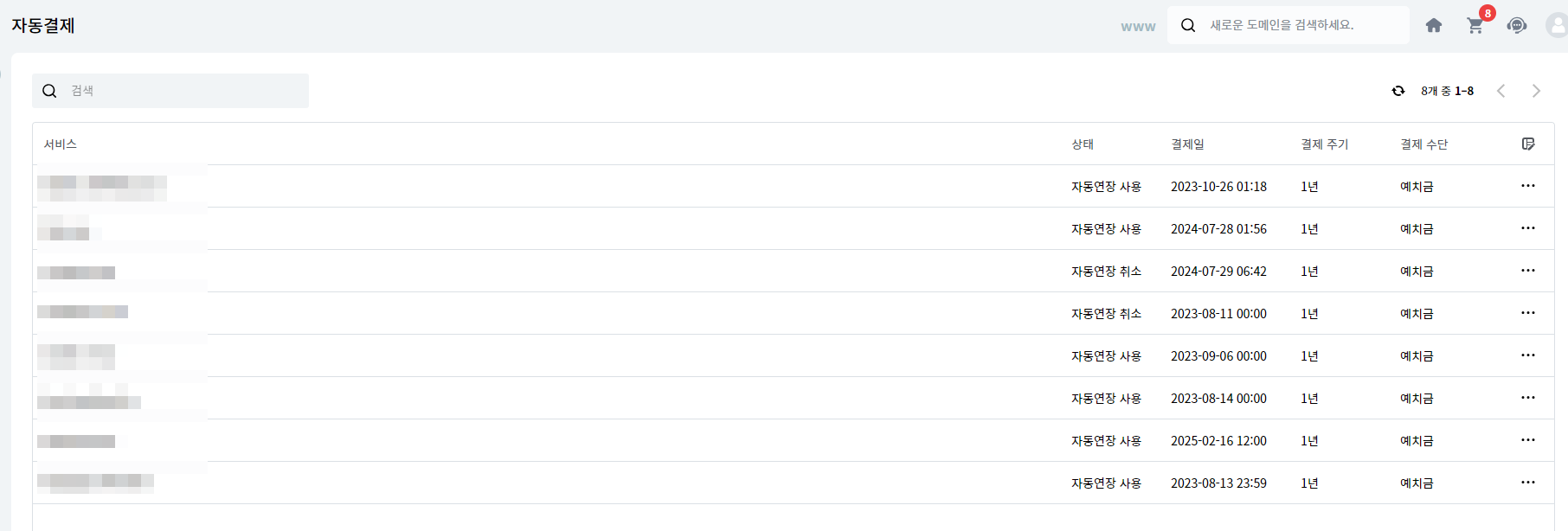 - 예치금으로 자동결제하여 도메인을 매년 자동연장할 수 있습니다.