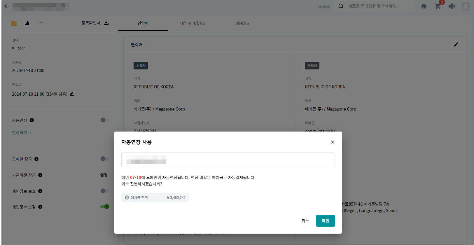 도메인 자동 연장