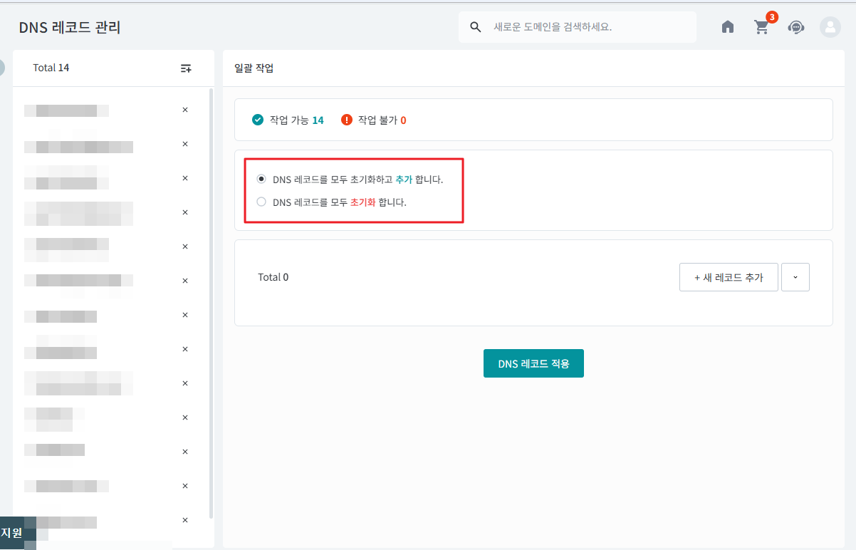 5. 처리 시간은 설정하는 도메인 갯수 및 레코드 양에 따라 약 3~5분가량 소요될 수 있습니다.