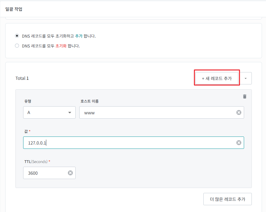여러개 도메인의 DNS 레코드를 한번에 추가할 수 있습니다.